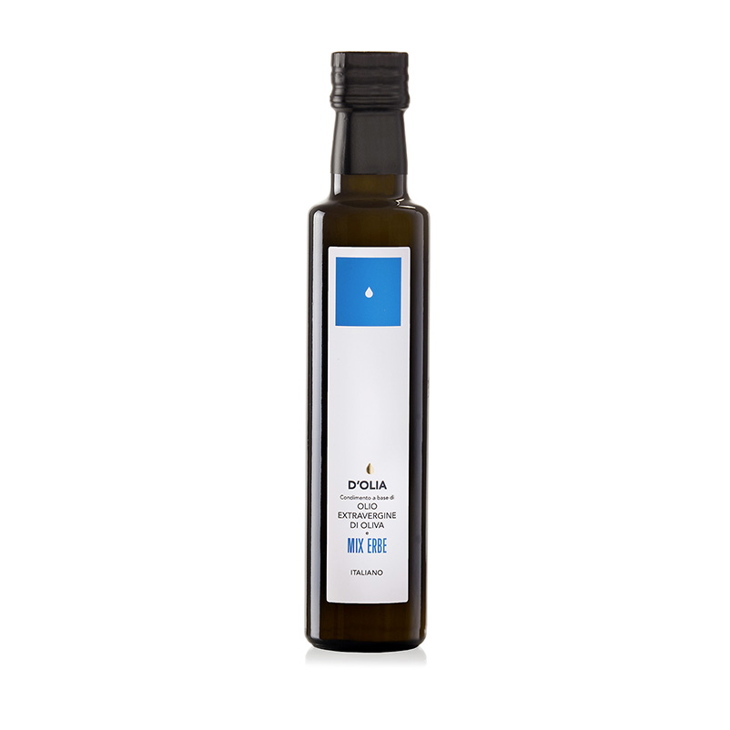The Extra virgin olive oil flavored with essence of herbal mix is perfect to enrich and give a touch of fantasy to your dishes, meats, fishes, pizza or salad… and why not, for your dessert!